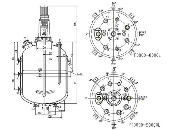 ขนาดของเครื่องปฏิกรณ์เคลือบแก้วชนิดปิด (mm)
