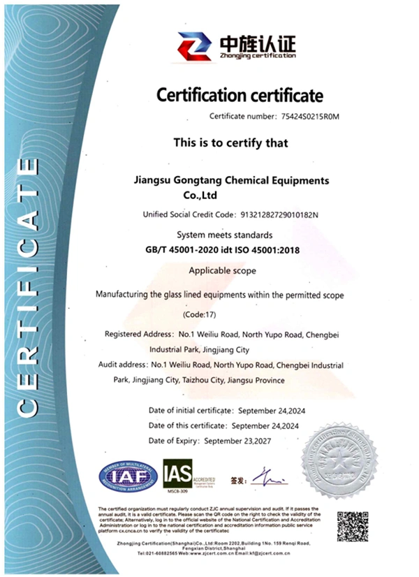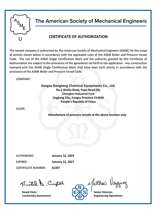 Jiangsu Gongtang Chemical Equipments Co., Ltd. ได้รับการรับรองจาก China Chemical Industrial Equipment Association ในฐานะผู้ผลิตมืออาชีพด้านอุปกรณ์เคลือบแก้ว ผลิตภัณฑ์ของเราครอบคลุมเครื่องปฏิกรณ์เคลือบแก้วขนาด 50L–80,000L ถังเก็บเคลือบแก้วขนาด 100L–200,000L เครื่องแลกเปลี่ยนความร้อนแบบแผ่นและแบบเปลือกและท่อ รวมถึงอุปกรณ์เสริมของถัง เช่น ใบกวนเคลือบแก้วและวาล์วระบาย เรายังให้บริการออกแบบอุปกรณ์เคลือบแก้วแบบสั่งผลิตใหม่ การเคลือบแก้วซ้ำ และบริการบำรุงรักษา